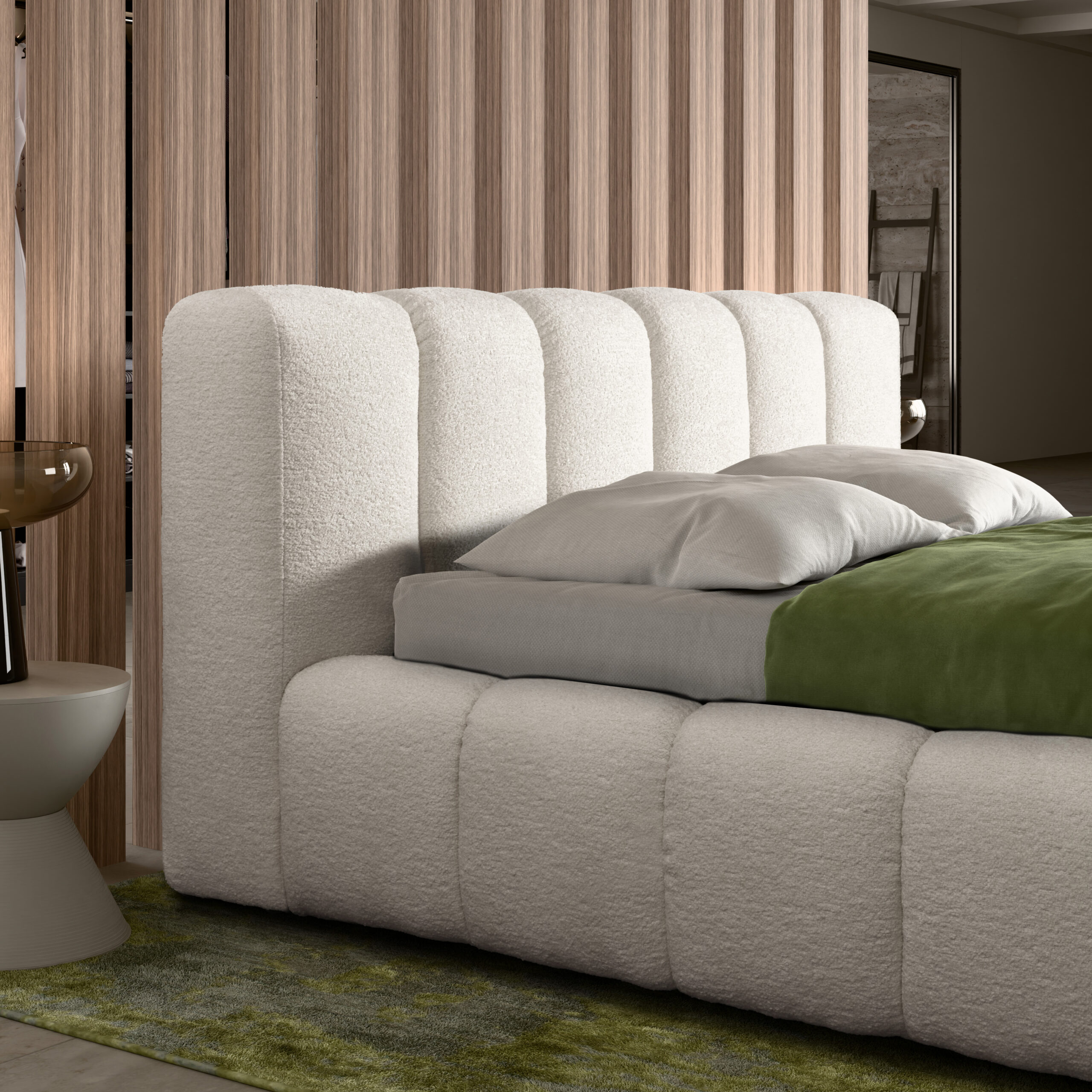 Keira, il letto matrimoniale che unisce eleganza moderna e comodità sfacciata. Con la sua struttura imbottita effetto bouclé e il design trapuntato a panetti sarà il protagonista della tua camera da letto. La testiera alta e soffice che ti accoglie come un abbraccio, perfetta per le maratone di serie tv o per leggere libri fino all’alba. La base oversize e la pediera imbottita rendono ogni risveglio un momento da prima classe. Disponibile anche con box contenitore .