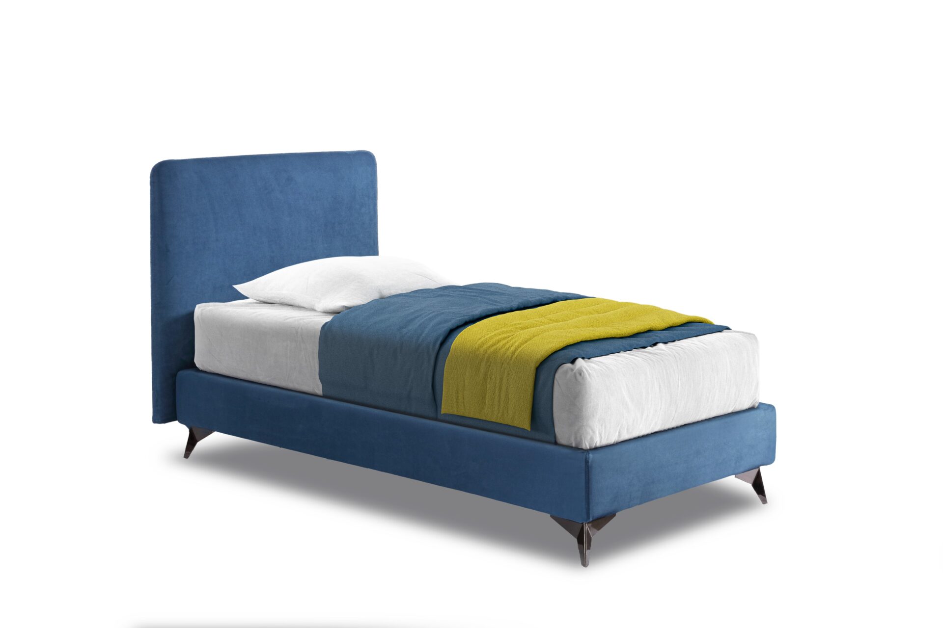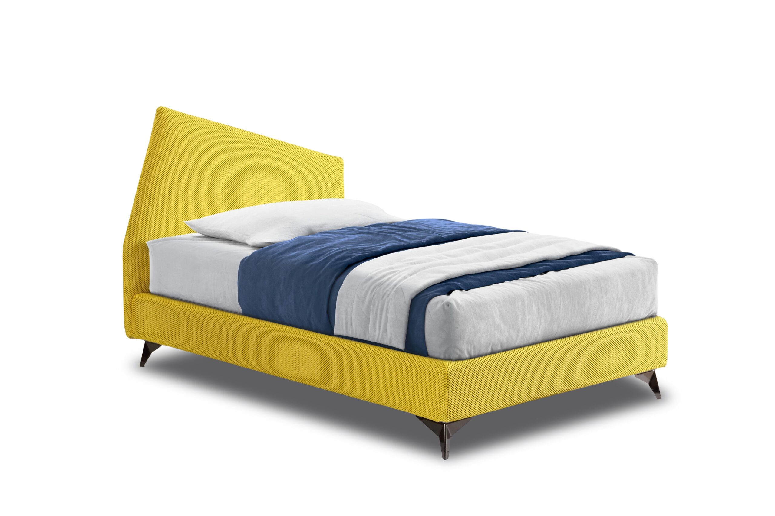 Il design pulito, con testiera imbottita e piedini metallici a contrasto, lo rende perfetto per camere moderne, ambienti contract o stanze per ragazzi. Il rivestimento è completamente sfoderabile e personalizzabile in diversi colori e tessuti.