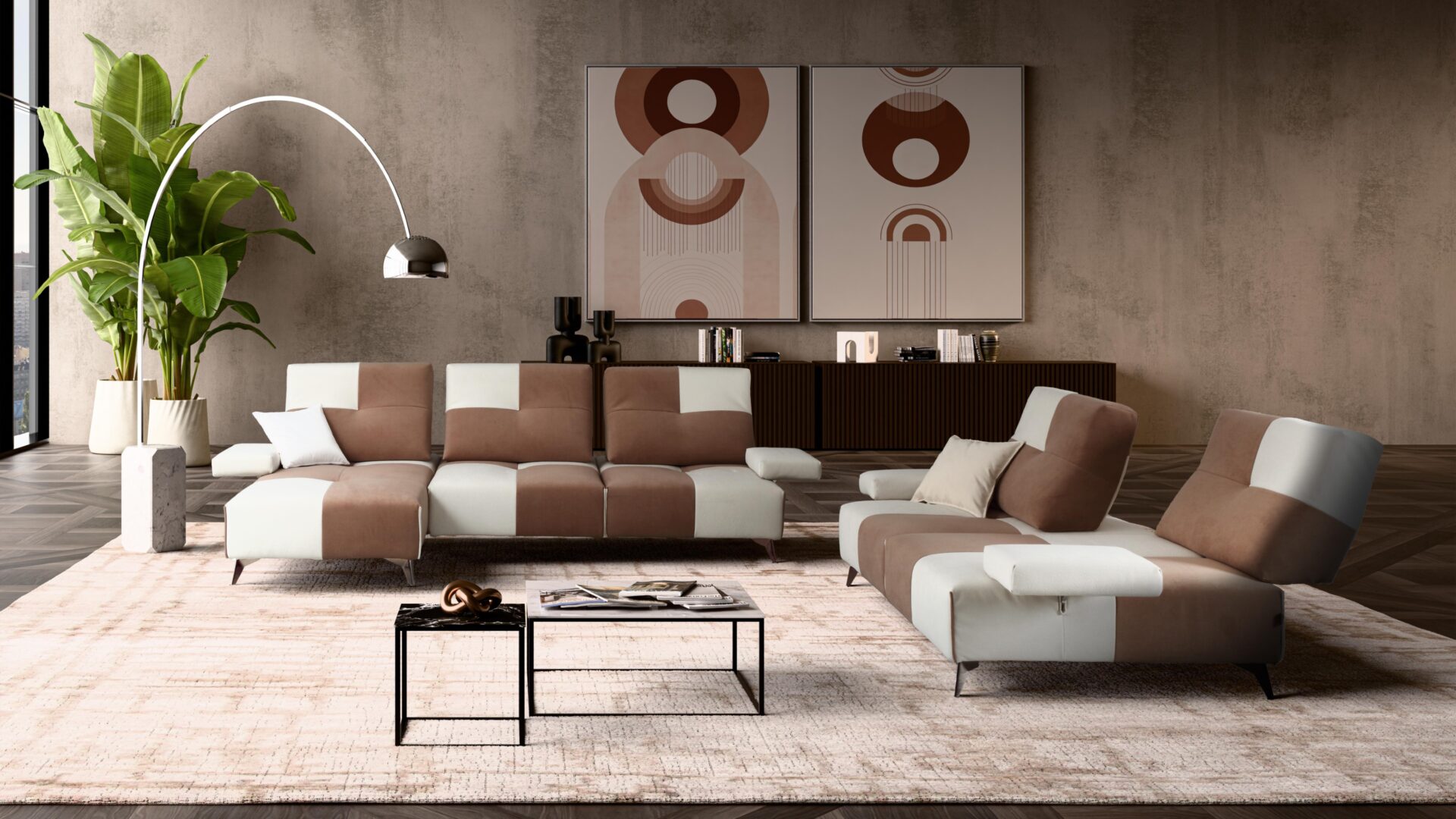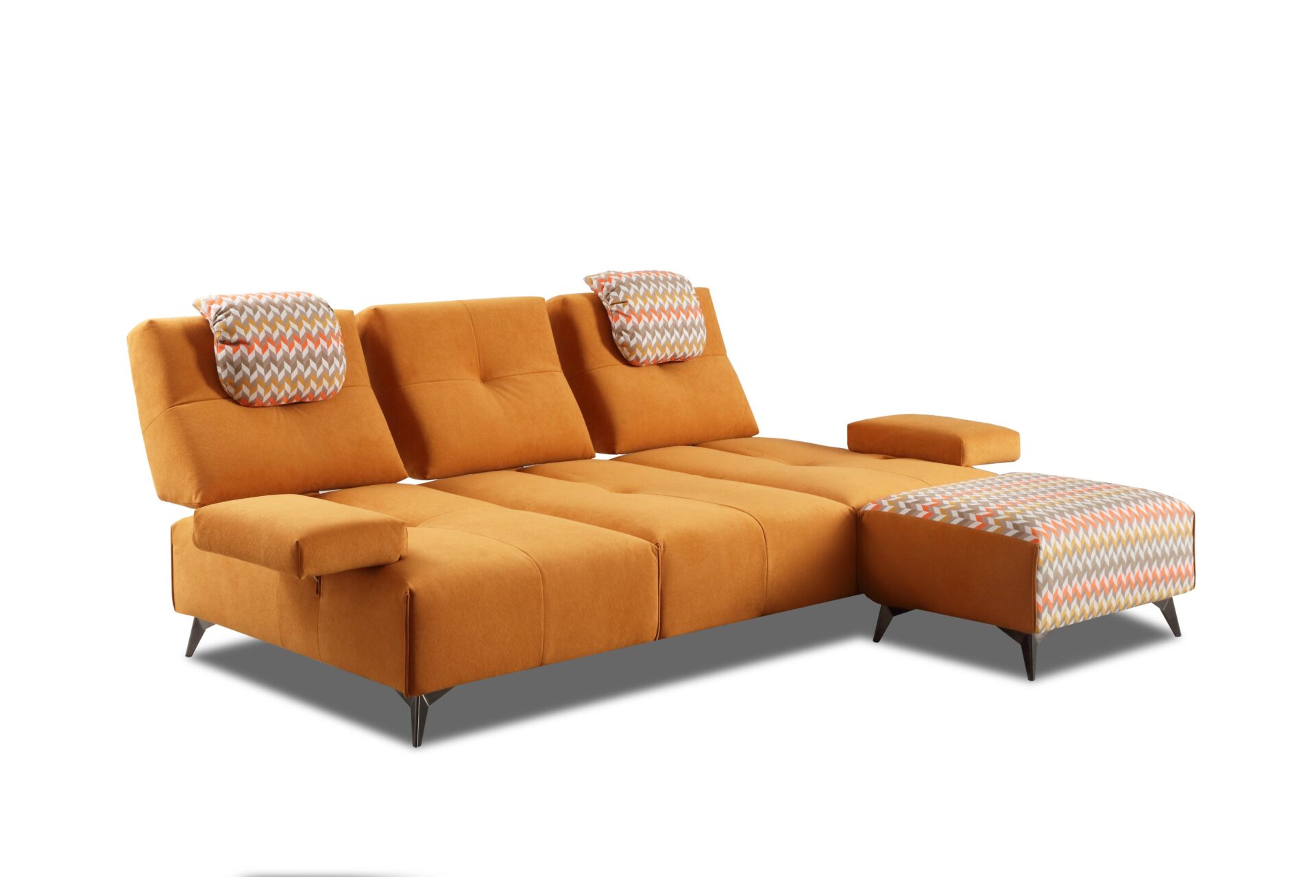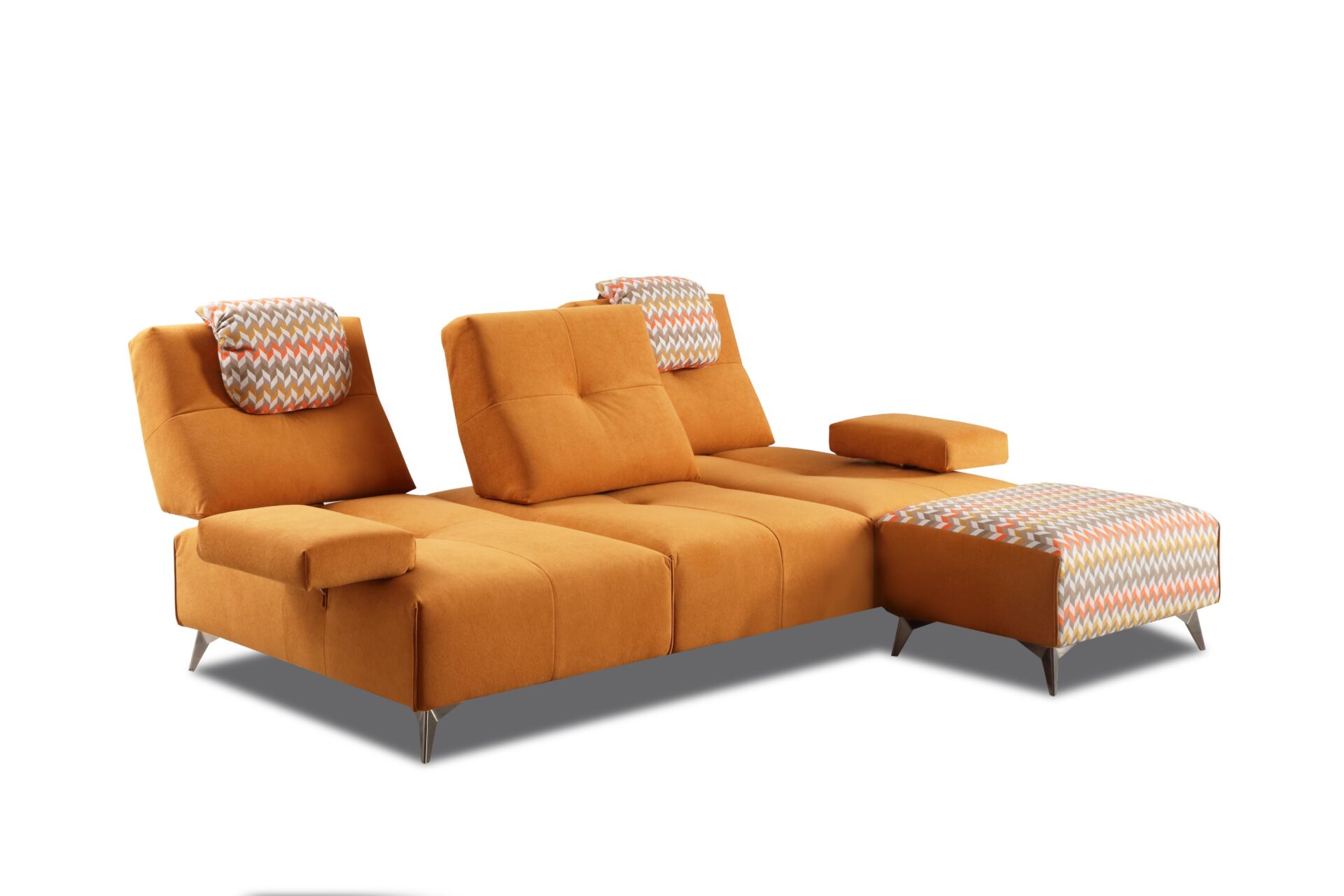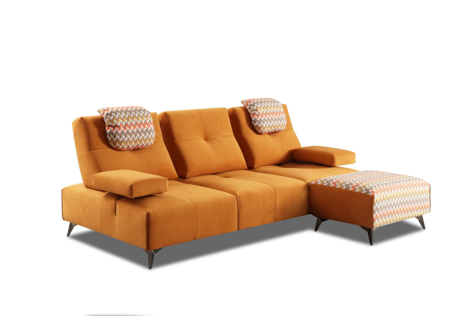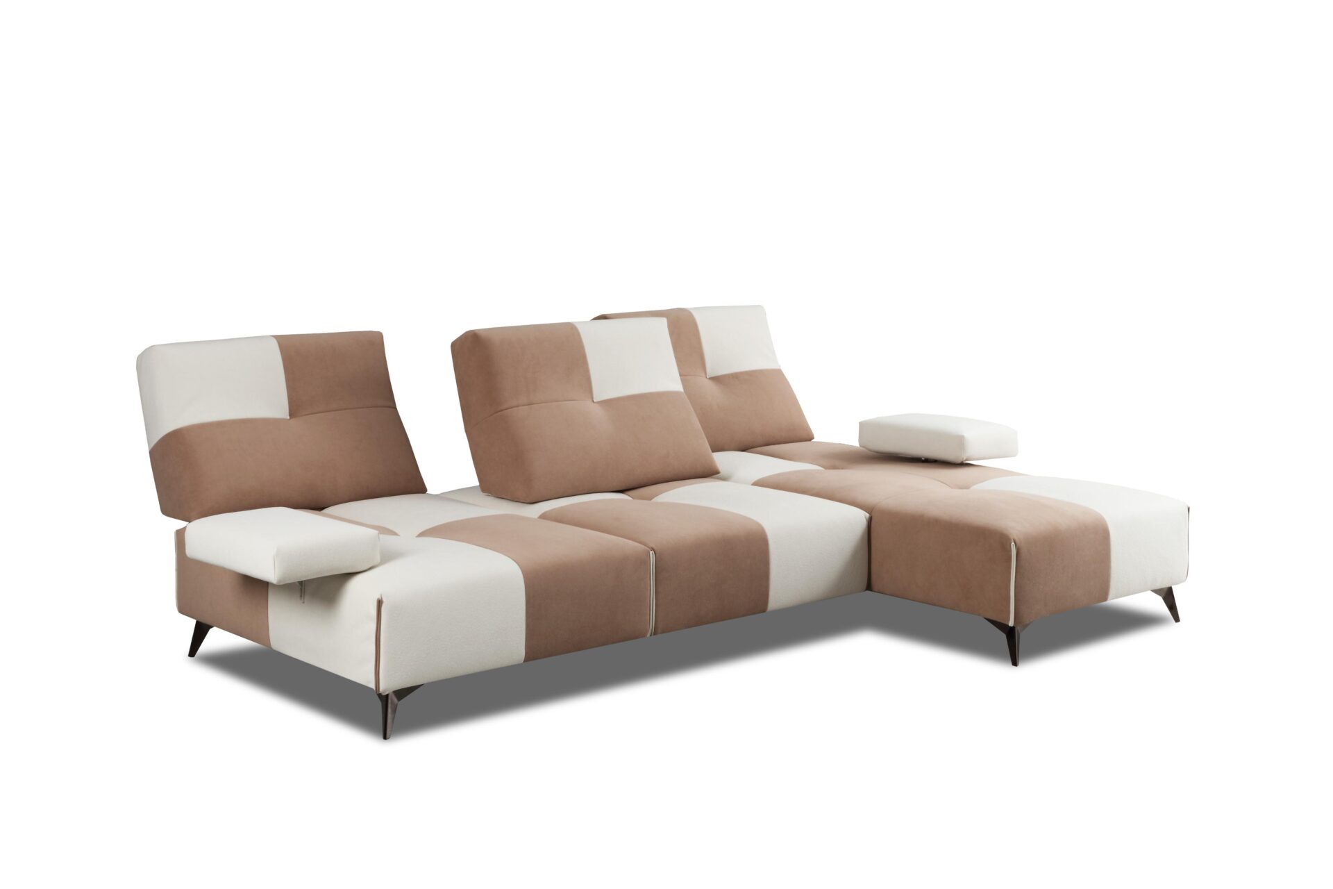 Spike è il divano modulare pensato per chi ama il design moderno e funzionale. Le sue forme geometriche e l’alternanza cromatica dei rivestimenti creano un impatto visivo unico, perfetto per ambienti contemporanei ed eleganti. Ogni elemento è progettato per offrire il massimo comfort: schienali reclinabili, poggiatesta regolabili e braccioli ribaltabili ti permettono di modellare ogni seduta in base al tuo stile di relax.